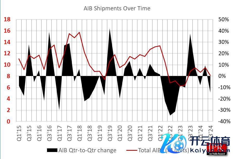 陈诉走漏,2024年第 3 季度 AIB出货量环比下落 14.5%,同比下落 7.9%。