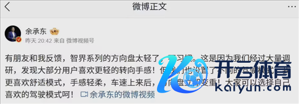 快科技1月15日音尘,余承东近日通过视频先容了智界R7汽车的标的盘野心体育游戏app平台,强调了其随速助力转向功能,即车速越快标的盘越重,以普及驾驶安全性。
